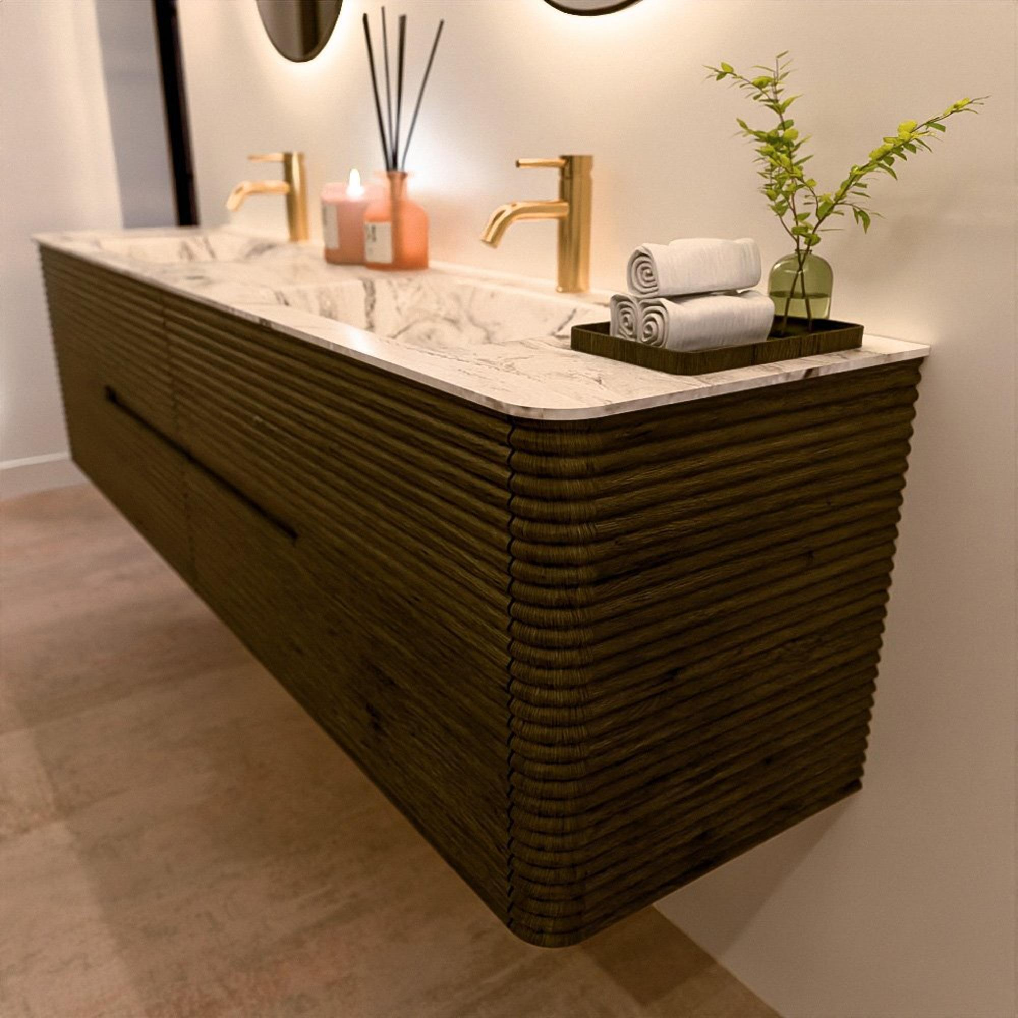 Le meuble de salle de bain CIRO-DLUX a été développé pour ceux qui choisissent un design moderne, des matériaux naturels et une fonctionnalité de haute qualité. Avec des dimensions allant de 70 cm à 190 cm, la gamme CIRO-DLUX s’intègre facilement aussi bien dans les salles de bain compactes que dans les grands espaces de design. Chaque meuble est une combinaison équilibrée d’esthétique, de savoir-faire et de qualité durable.