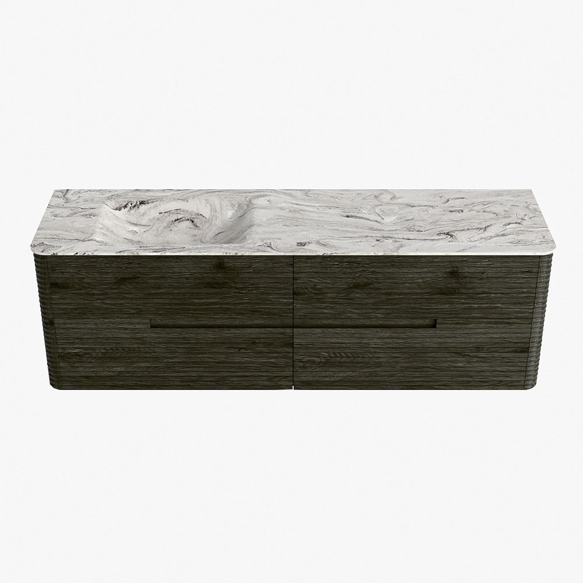 Mondiaz CIRO-DLUX Meuble de salle de bains - 160x45x50cm - Vasque solid surface Glace - 1 bassin à gauche - sans trous de robinet - 4 tiroirs - Shadow