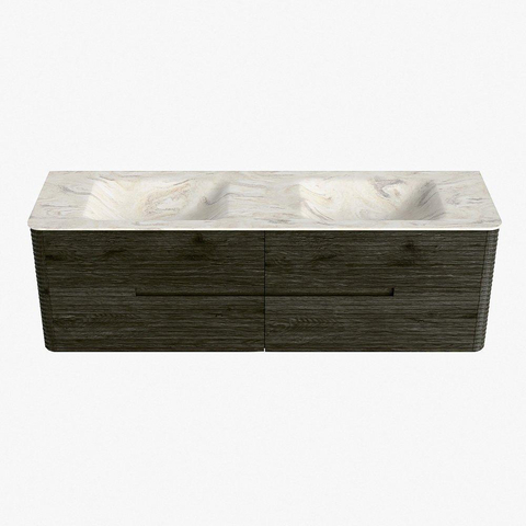 Mondiaz CIRO-DLUX Ensemble de meubles de salle de bains - 160x45x50cm - Plan vasque solid surface Ostra - 2 vasques double - sans trous de robinetterie - 4 tiroirs - Shadow