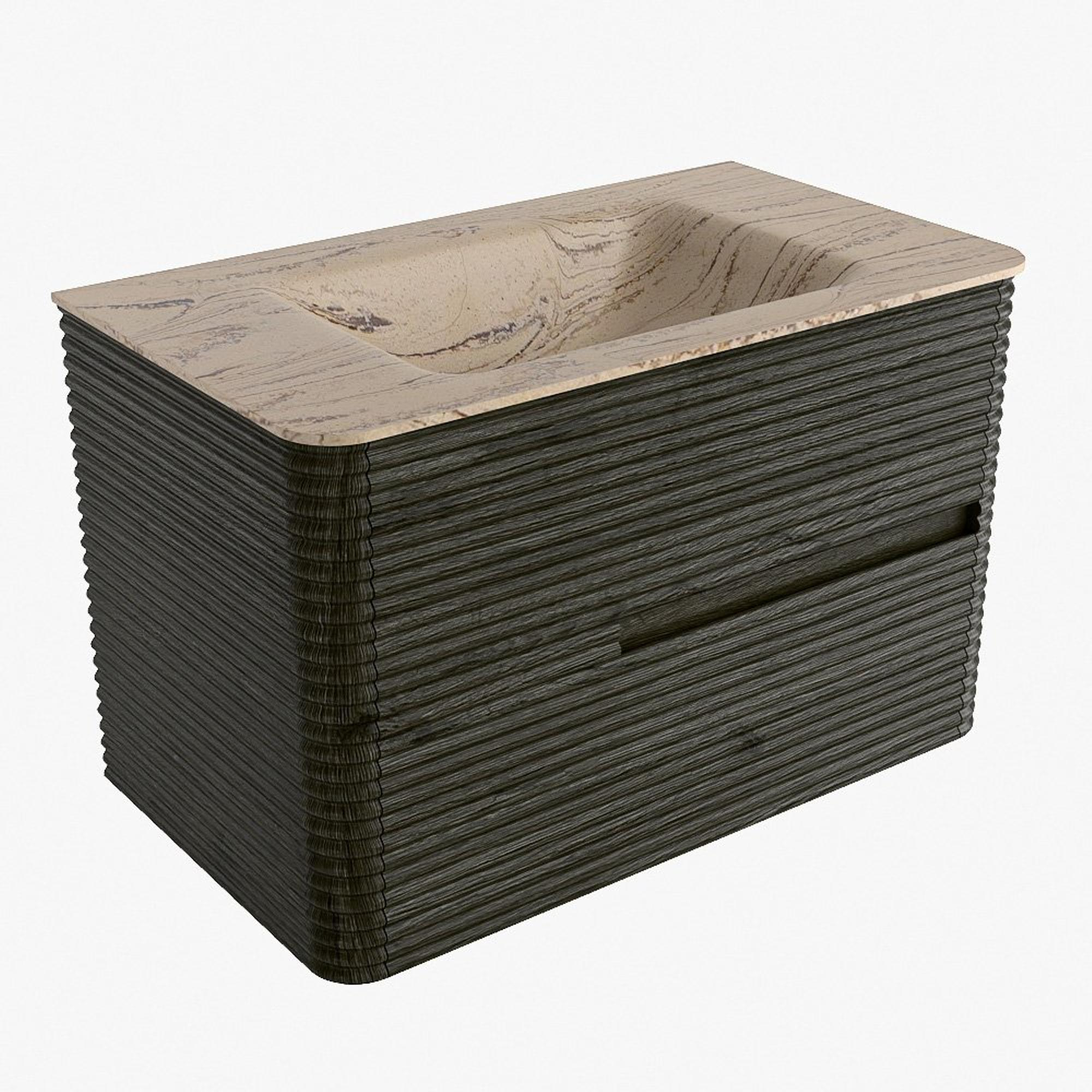 Mondiaz CIRO-DLUX Meuble de salle de bains - 80x45x50cm - lavabo en solid surface Arena - 1 vasque au milieu - sans trous de robinetterie - 2 tiroirs - Shadow