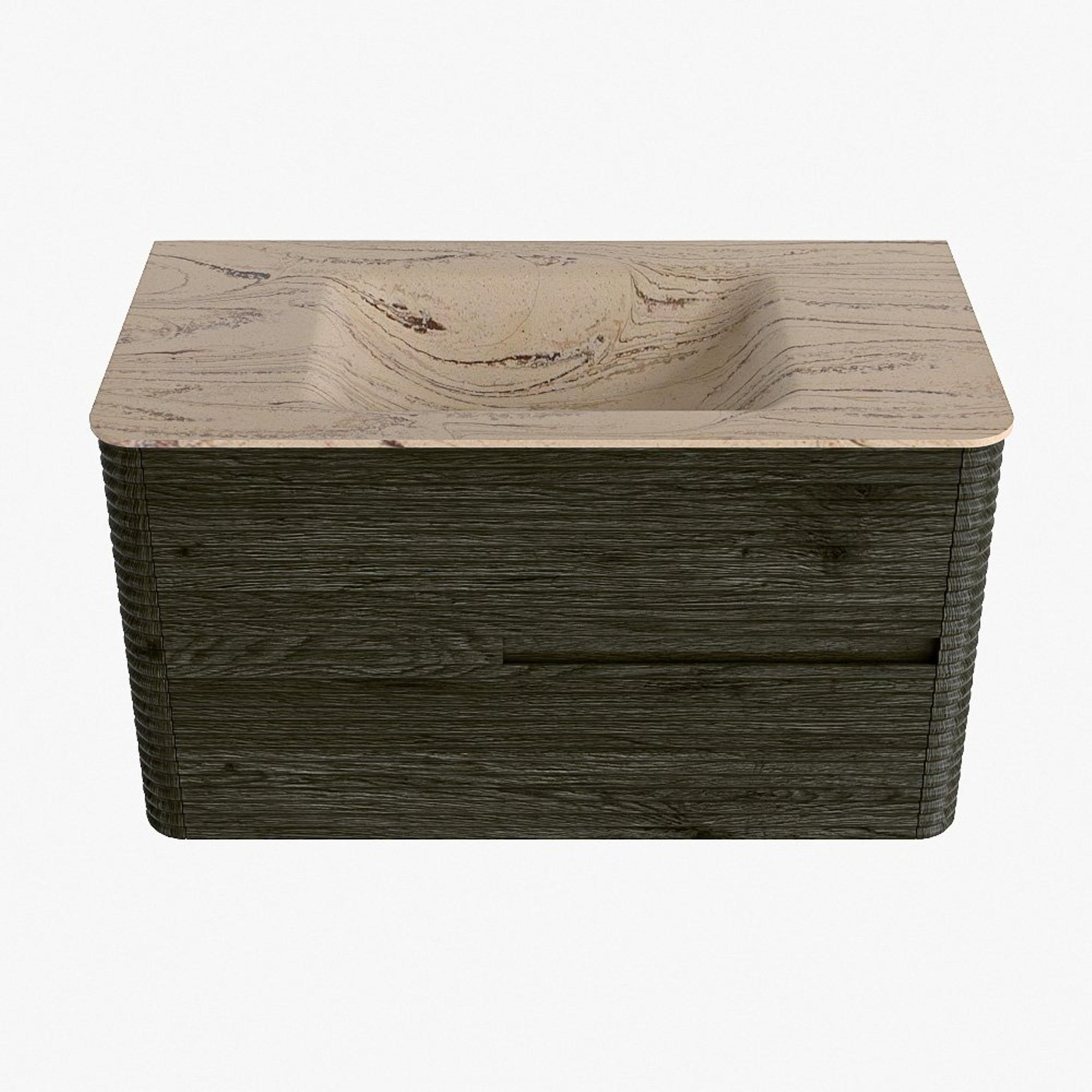 Mondiaz CIRO-DLUX Meuble de salle de bains - 90x45x50cm - Plan-vasque solid surface Arena - 1 cuve Centrale - 1 trou de robinet - 2 tiroirs - Shadow