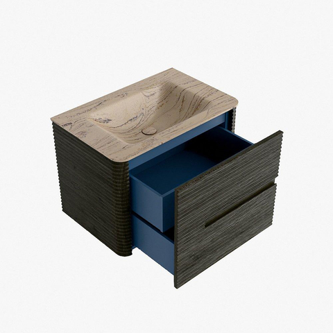 La praticité est un élément essentiel de la gamme CIRO. Le meuble dispose d’un grand tiroir avec un tiroir intérieur supplémentaire, idéal pour ranger de manière organisée tous les articles quotidiens de la salle de bain. Grâce à la poignée intégrée et au mécanisme de fermeture douce, la façade reste sobre, élégante et épurée.