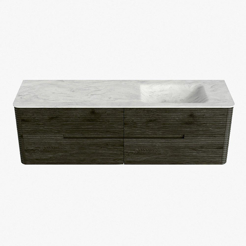 Mondiaz CIRO-DLUX Ensemble de meubles de salle de bains - 160x45x50cm - plan-vasque solid surface Opalo - 1 lavabo à droite - sans trous de robinet - 4 tiroirs - Shadow