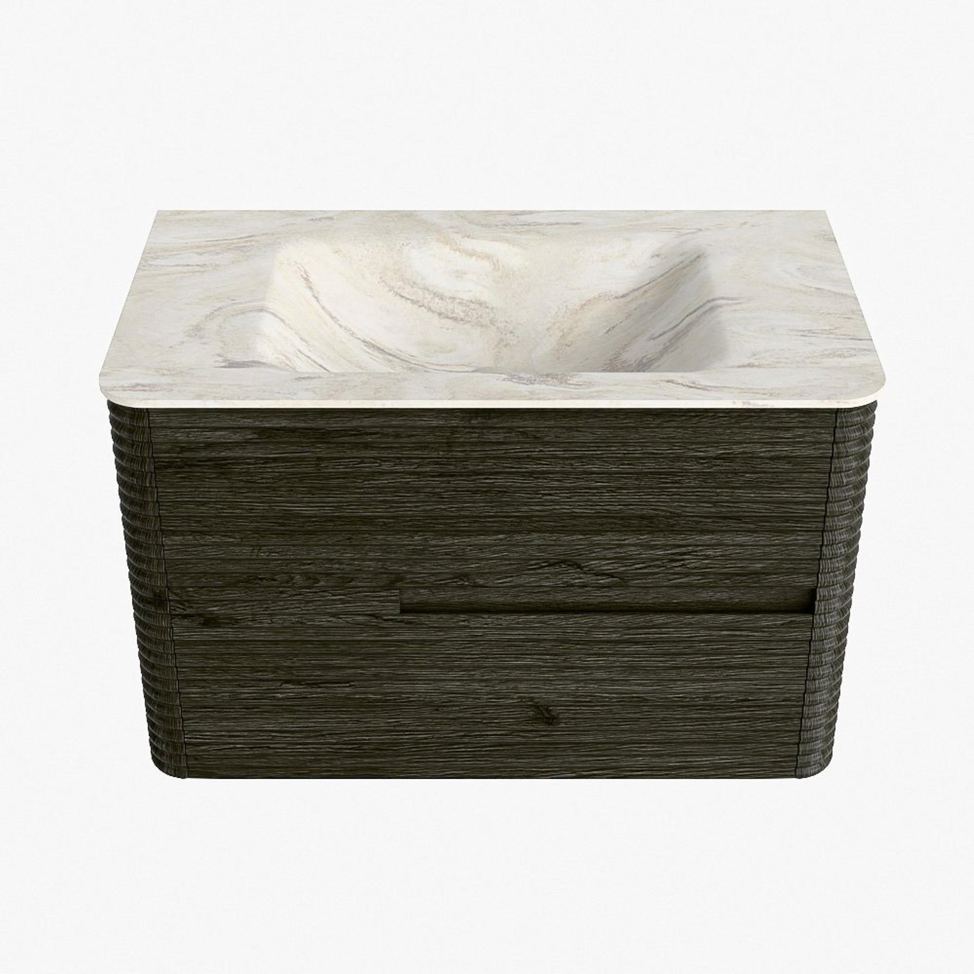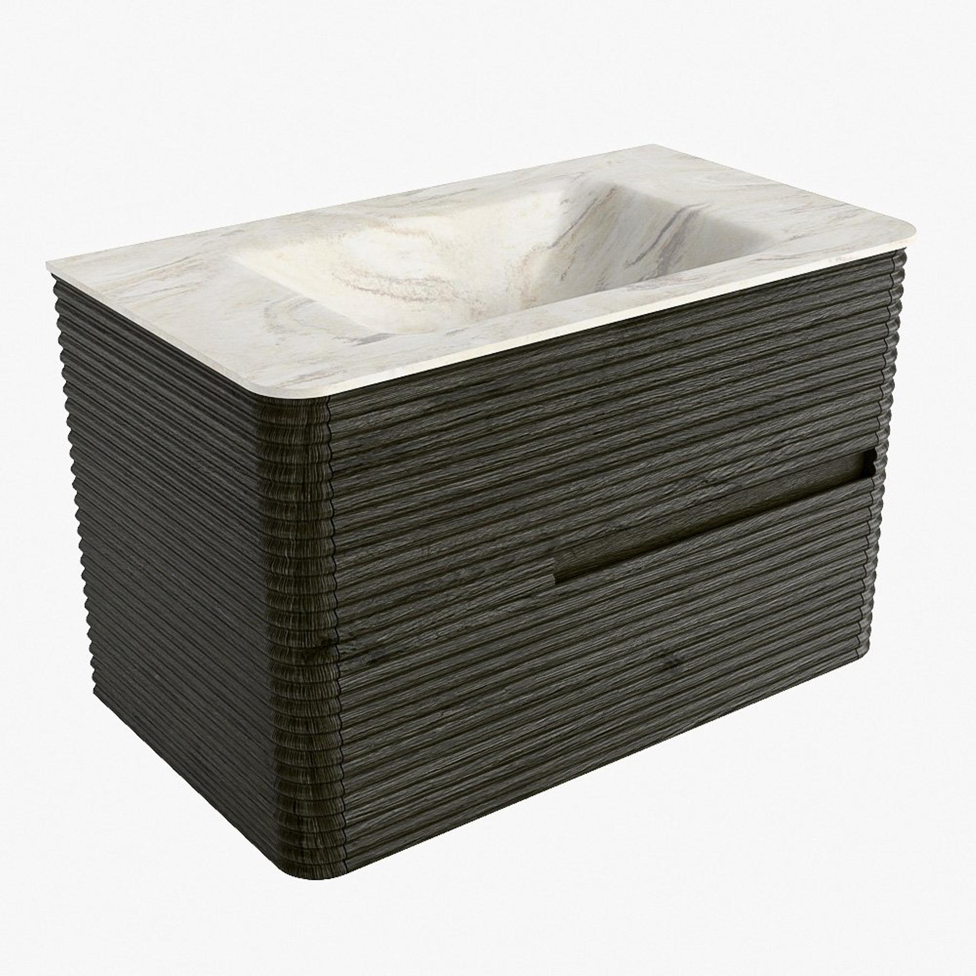 Mondiaz CIRO-DLUX Ensemble de meubles de salle de bains - 80x45x50cm - Plan-vasque solid surface Ostra - 1 vasque au milieu - 1 trou de robinet - 2 tiroirs - Shadow