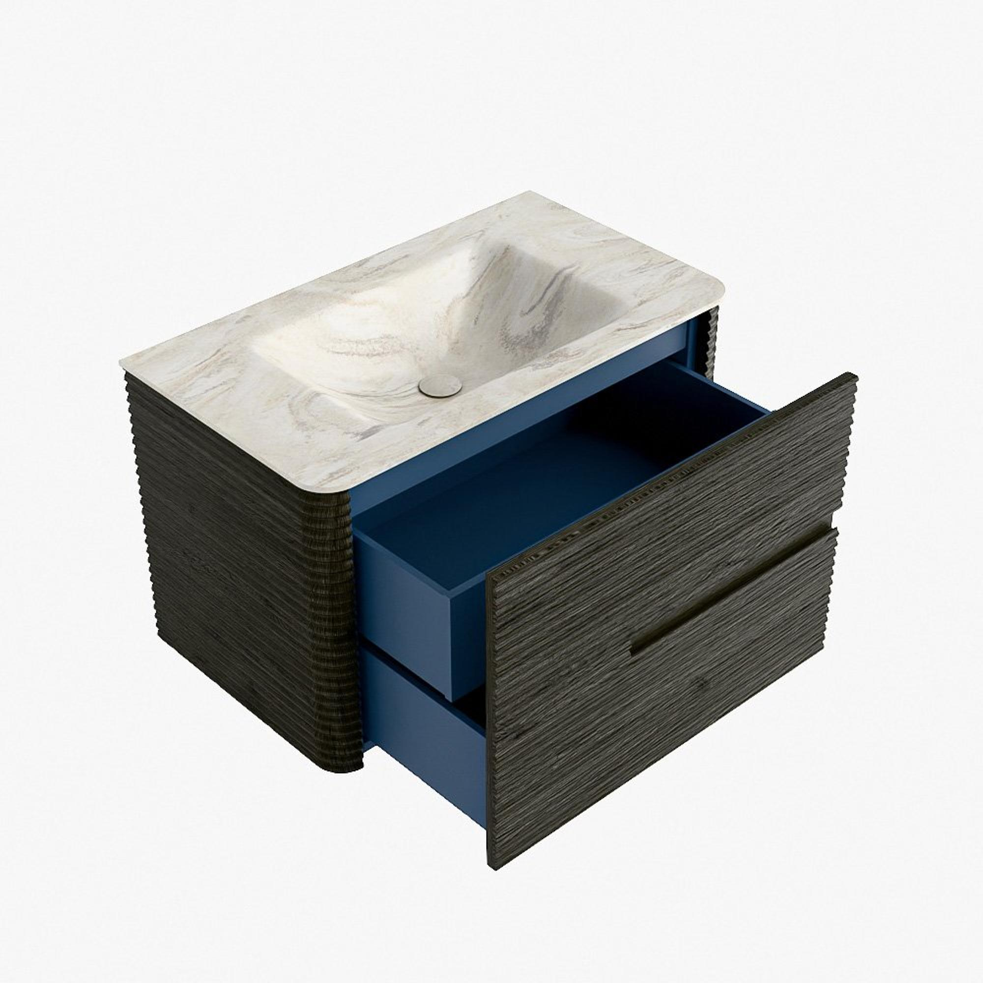 La praticité est un élément essentiel de la gamme CIRO. Le meuble dispose d’un grand tiroir avec un tiroir intérieur supplémentaire, idéal pour ranger de manière organisée tous les articles quotidiens de la salle de bain. Grâce à la poignée intégrée et au mécanisme de fermeture douce, la façade reste sobre, élégante et épurée.