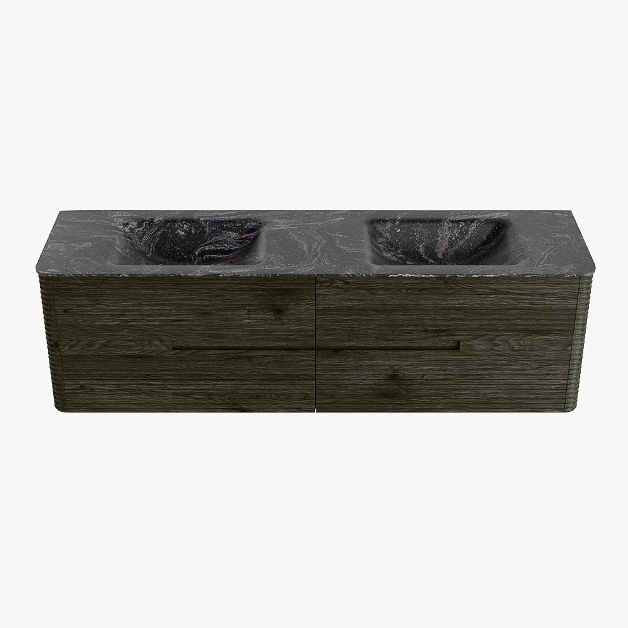 Mondiaz CIRO-DLUX Ensemble de meubles de salle de bains - 170x45x50cm - Plan vasque solid surface Lava - 2 vasques double - sans trous de robinet - 4 tiroirs - Shadow