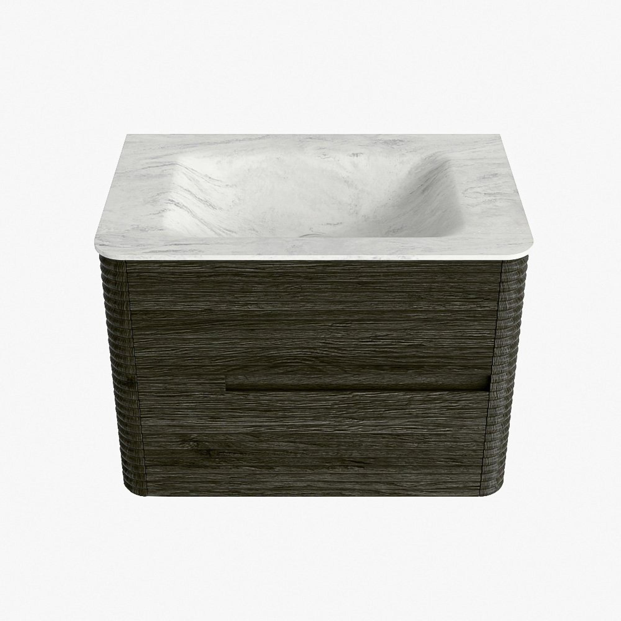 Mondiaz CIRO-DLUX Meuble de salle de bains - 70x45x50cm - plan-vasque en solid surface Opalo - 1 vasque centrale - 1 trou de robinetterie - 2 tiroirs - Shadow