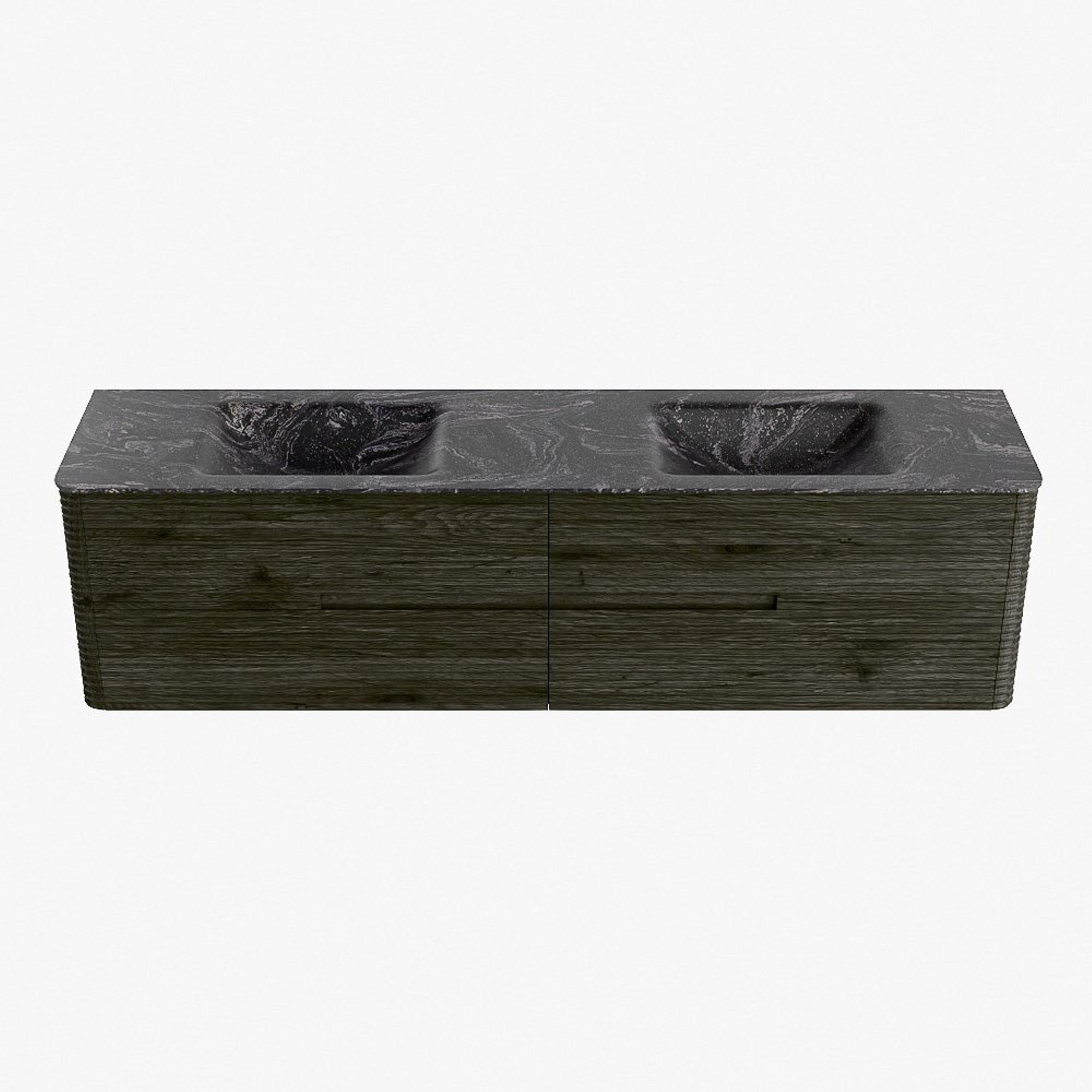 Mondiaz CIRO-DLUX Ensemble de meuble de salle de bains - 190x45x50cm - Lavabo en solid surface Lava - 2 vasques double - 2 trous de robinet - 4 tiroirs - Shadow