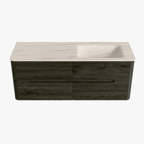 Mondiaz CIRO-DLUX Ensemble meuble de salle de bains - 130x45x50cm - Vasque solid surface Meli - 1 vasque à droite - sans trous de robinet - 4 tiroirs - Shadow
