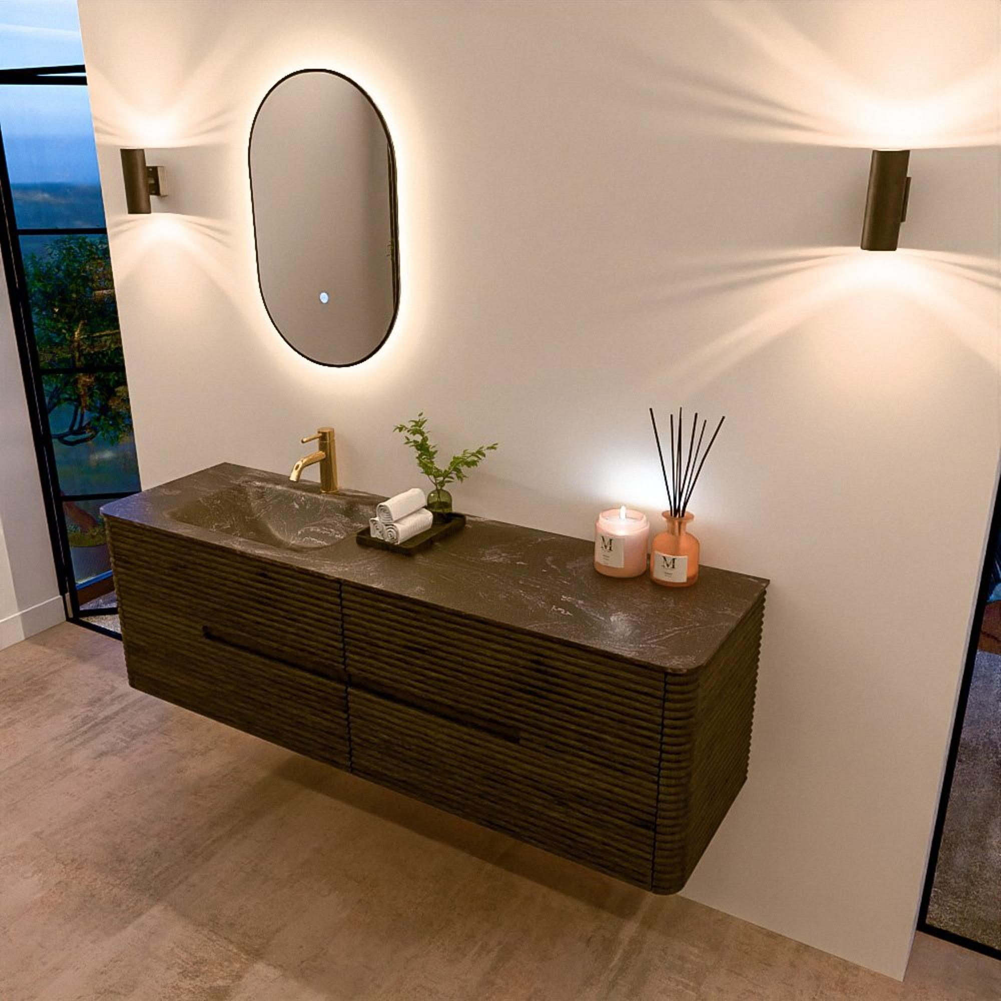 Mondiaz CIRO-DLUX Meuble de salle de bains - 160x45x50cm - Vasque solid surface Lava - 1 lavabo à gauche - 1 trou de robinet - 4 tiroirs - Shadow