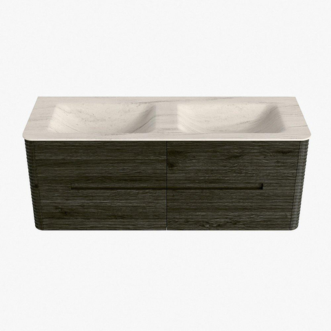 Mondiaz CIRO-DLUX Ensemble de meubles de salle de bains - 130x45x50cm - Plan vasque Solid surface Meli - 2 vasques Double - sans trous de robinet - 4 tiroirs - Shadow
