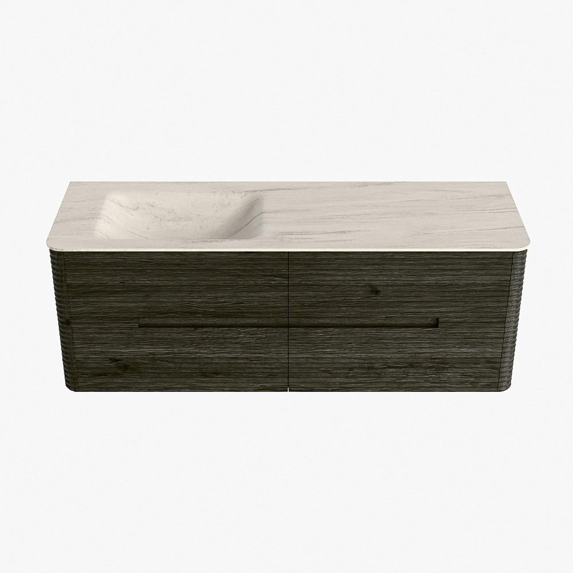 Mondiaz CIRO-DLUX Ensemble meuble de salle de bains - 140x45x50cm - Plan-vasque solid surface Meli - 1 vasque à gauche - sans trous de robinet - 4 tiroirs - Shadow