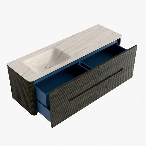 Mondiaz CIRO-DLUX Meuble de salle de bains - 150x45x50cm - Plan-vasque solid surface Meli - 1 vasque à gauche - 1 trou de robinet - 4 tiroirs - Shadow