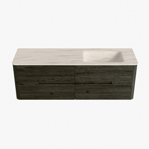 Mondiaz CIRO-DLUX Ensemble de meubles de salle de bains - 150x45x50cm - Plan-vasque en solid surface Meli - 1 bassin à droite - 1 trou de robinet - 4 tiroirs - Shadow
