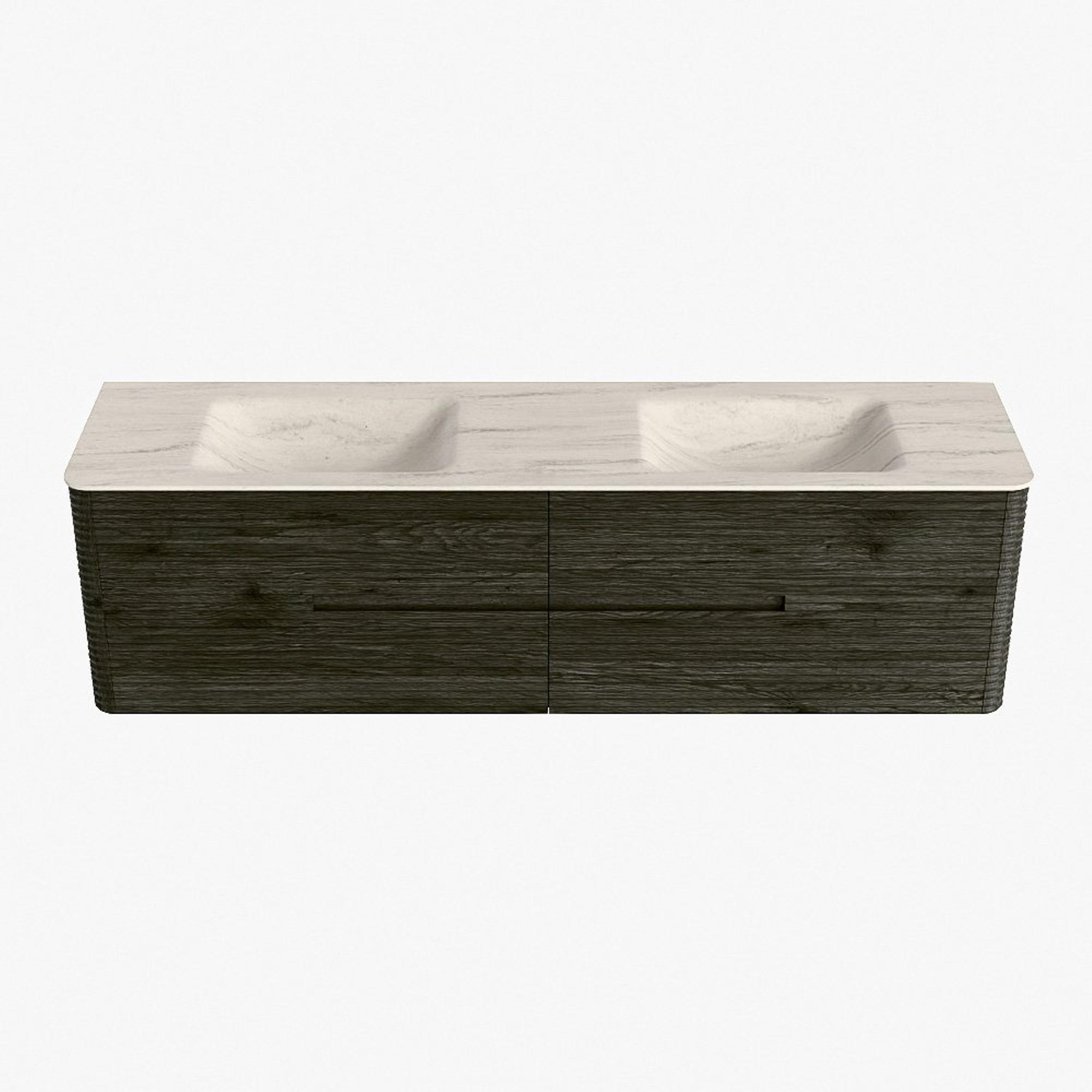Mondiaz CIRO-DLUX Ensemble de meubles de salle de bains - 180x45x50cm - Plan vasque solid surface Meli - 2 vasques double - 2 trous de robinetterie - 4 tiroirs - Shadow