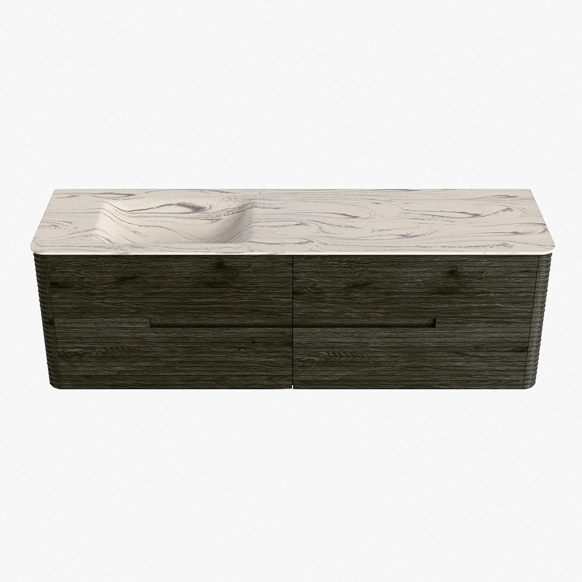Mondiaz CIRO-DLUX Meuble de salle de bains - 160x45x50cm - Plan-vasque solid surface Nata - 1 vasque à gauche - 1 trou de robinet - 4 tiroirs - Shadow