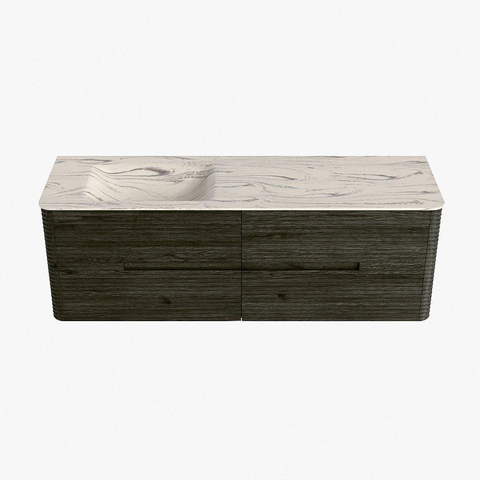 Mondiaz CIRO-DLUX Ensemble de meubles de salle de bains - 150x45x50cm - Plan vasque solid surface Nata - 1 vasque à gauche - sans trous de robinet - 4 tiroirs - Shadow