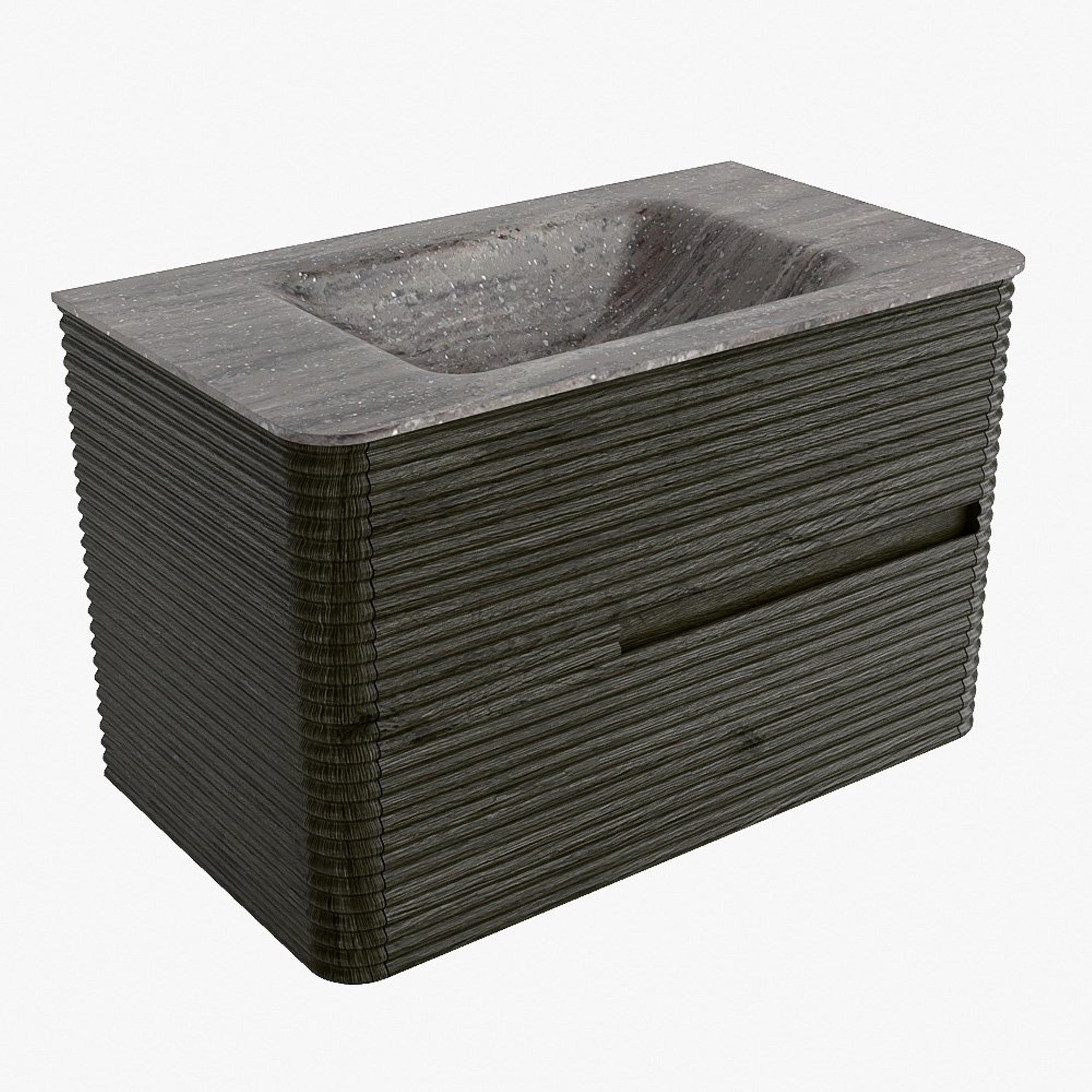 Mondiaz CIRO-DLUX Ensemble de meubles de salle de bains - 80x45x50cm - lavabo solid surface Oza - 1 vasque milieu - sans trous de robinet - 2 tiroirs - Shadow