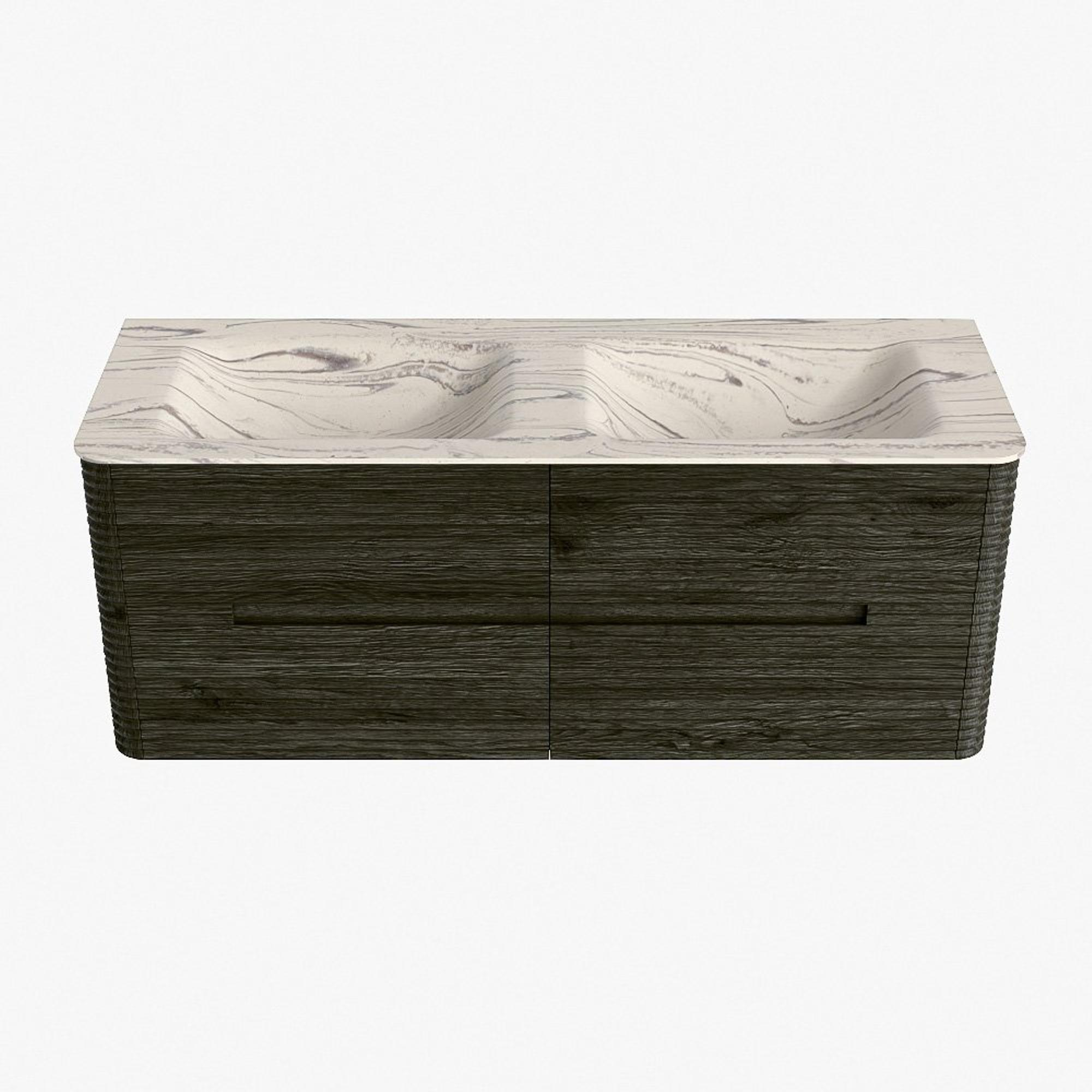 Mondiaz CIRO-DLUX Meuble de salle de bains - 130x45x50cm - Plan vasque en solid surface Nata - 2 vasques double - sans trous de robinetterie - 4 tiroirs - Shadow