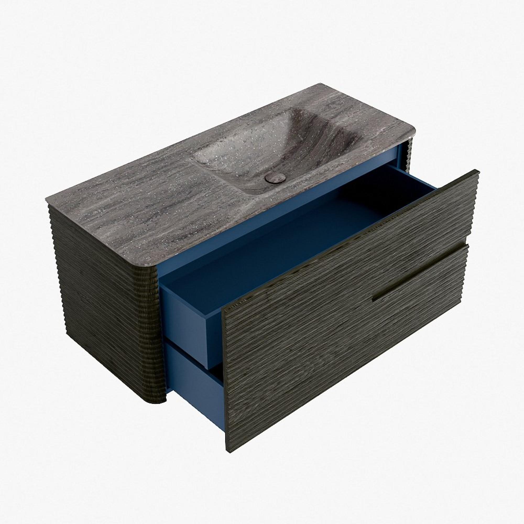 La praticité est un élément essentiel de la gamme CIRO. Le meuble dispose d’un grand tiroir avec un tiroir intérieur supplémentaire, idéal pour ranger de manière organisée tous les articles quotidiens de la salle de bain. Grâce à la poignée intégrée et au mécanisme de fermeture douce, la façade reste sobre, élégante et épurée.