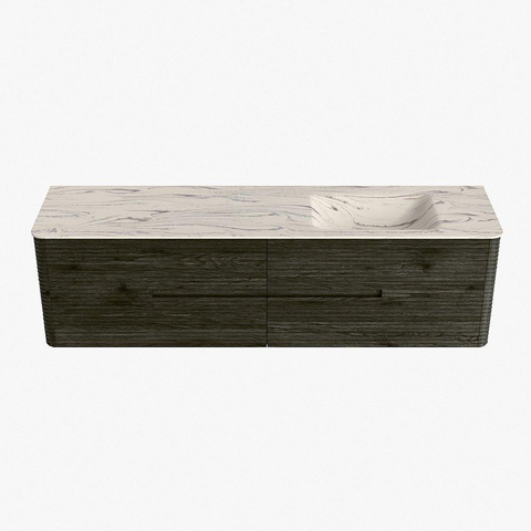 Mondiaz CIRO-DLUX Ensemble de meuble de salle de bains - 180x45x50cm - vasque en solid surface Nata - 1 lavabo à droite - sans trous de robinet - 4 tiroirs - Shadow