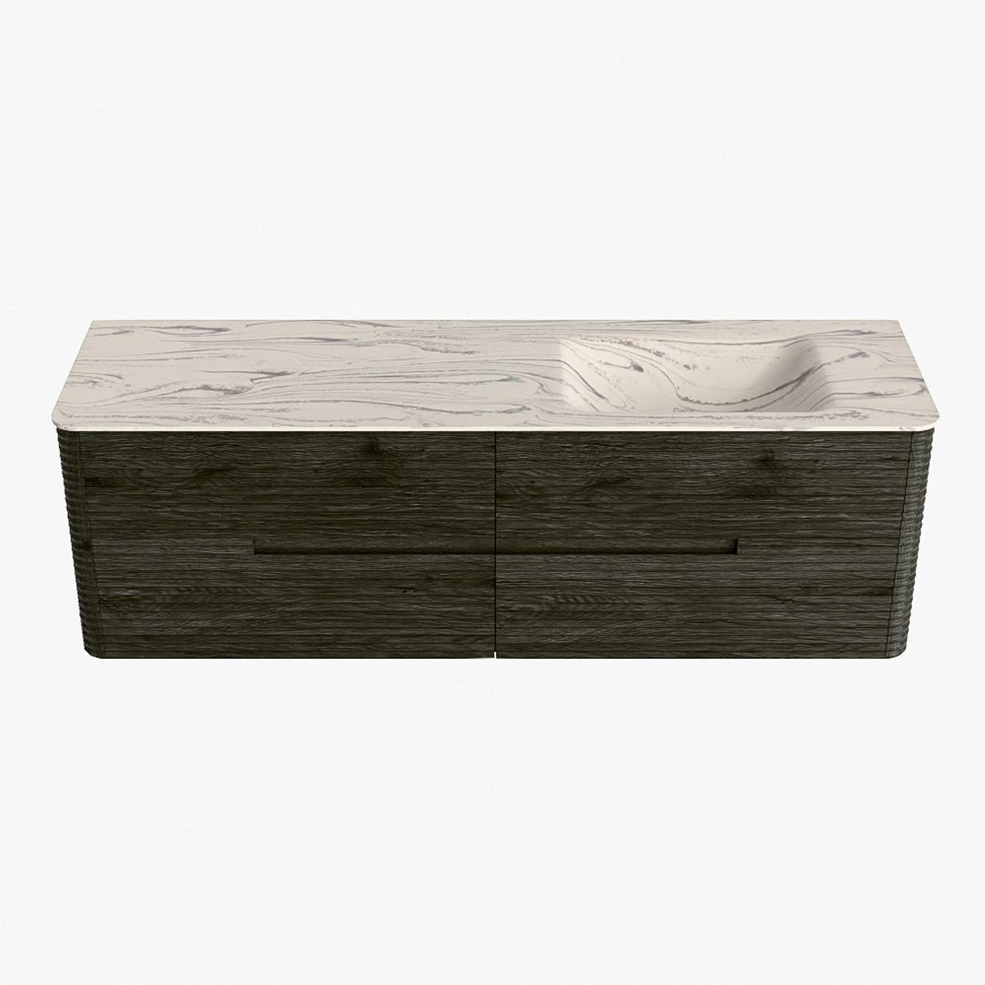Mondiaz CIRO-DLUX Ensemble de meubles de salle de bains - 160x45x50cm - Plan vasque en solid surface Nata - 1 vasque à droite - sans trous de robinetterie - 4 tiroirs - Shadow