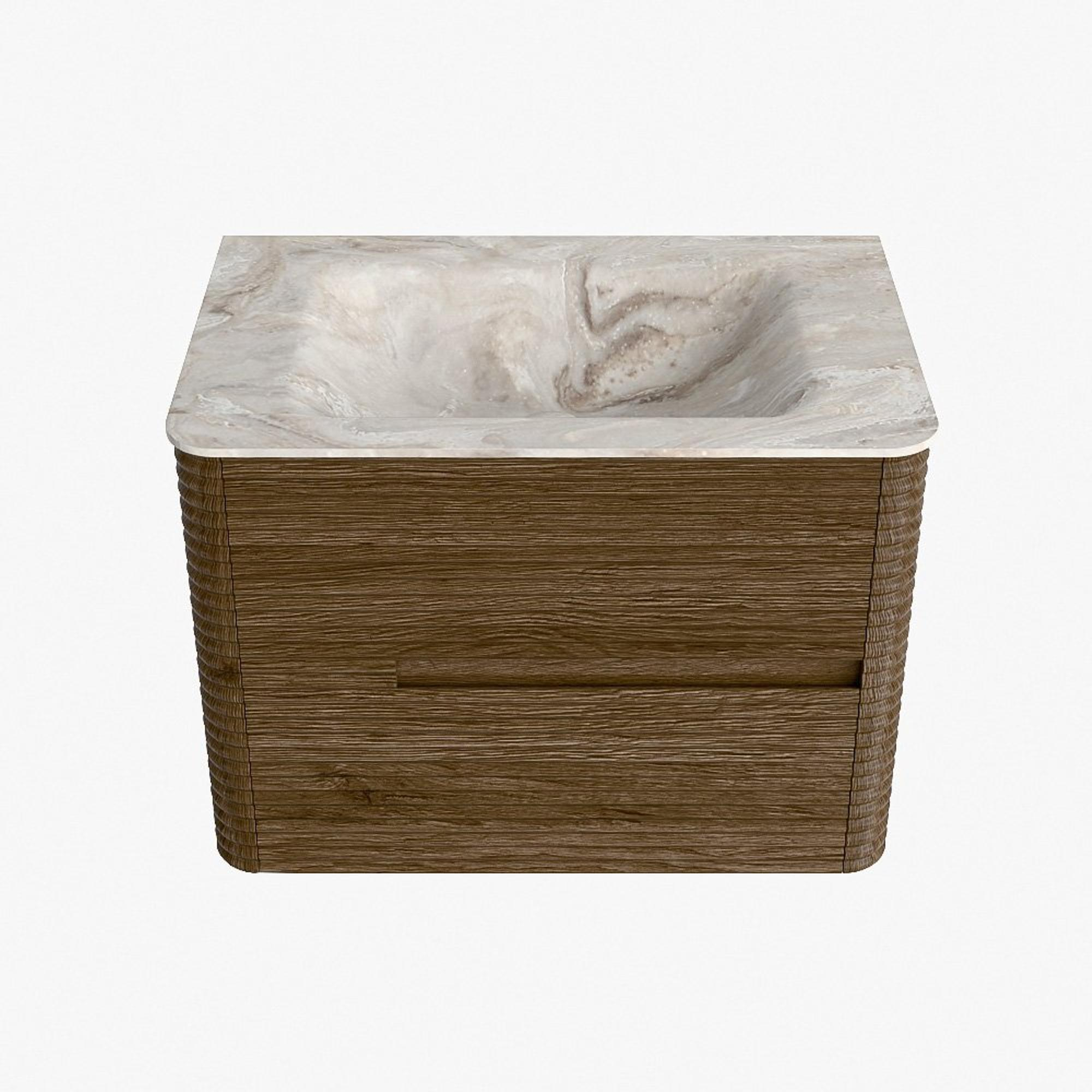 Mondiaz CIRO-DLUX Meuble de salle de bains - 70x45x50cm - lavabo solid surface Frappe - 1 vasque au milieu - 1 trou de robinetterie - 2 tiroirs - Dusk