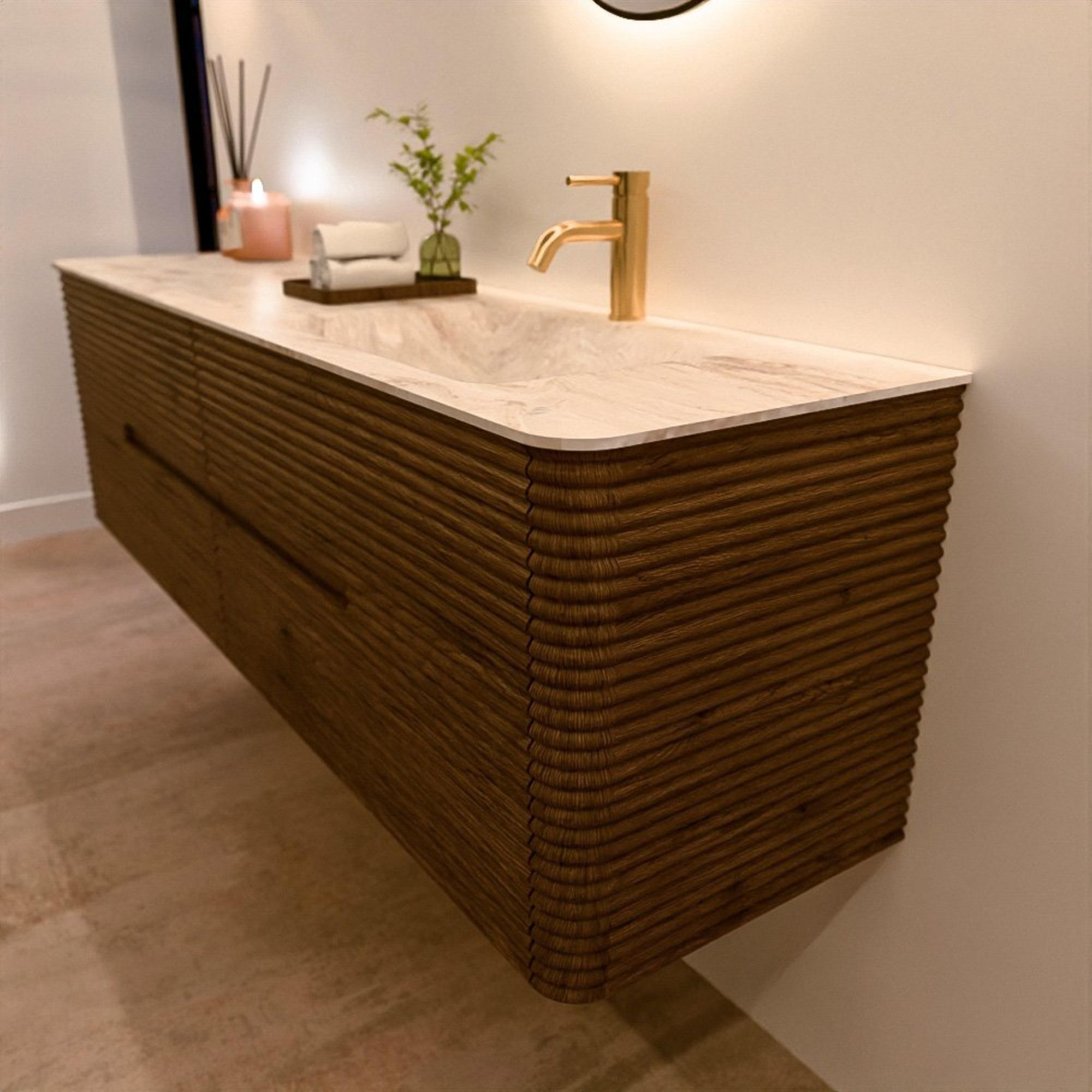 Le meuble de salle de bain CIRO-DLUX a été développé pour ceux qui choisissent un design moderne, des matériaux naturels et une fonctionnalité de haute qualité. Avec des dimensions allant de 70 cm à 190 cm, la gamme CIRO-DLUX s’intègre facilement aussi bien dans les salles de bain compactes que dans les grands espaces de design. Chaque meuble est une combinaison équilibrée d’esthétique, de savoir-faire et de qualité durable.