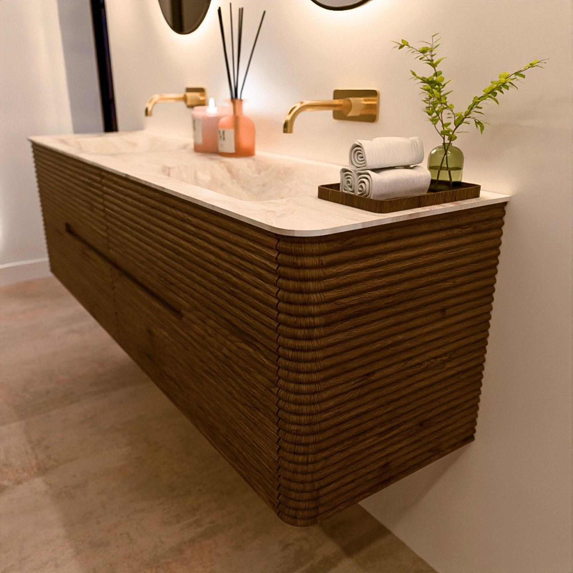 Le meuble de salle de bain CIRO-DLUX a été développé pour ceux qui choisissent un design moderne, des matériaux naturels et une fonctionnalité de haute qualité. Avec des dimensions allant de 70 cm à 190 cm, la gamme CIRO-DLUX s’intègre facilement aussi bien dans les salles de bain compactes que dans les grands espaces de design. Chaque meuble est une combinaison équilibrée d’esthétique, de savoir-faire et de qualité durable.