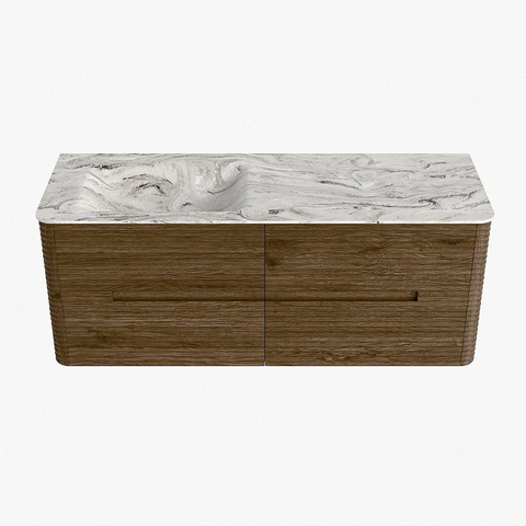 Mondiaz CIRO-DLUX Ensemble de meubles de salle de bains - 130x45x50cm - lavabo solid surface Glace - 1 vasque à gauche - sans trous de robinet - 4 tiroirs - Dusk