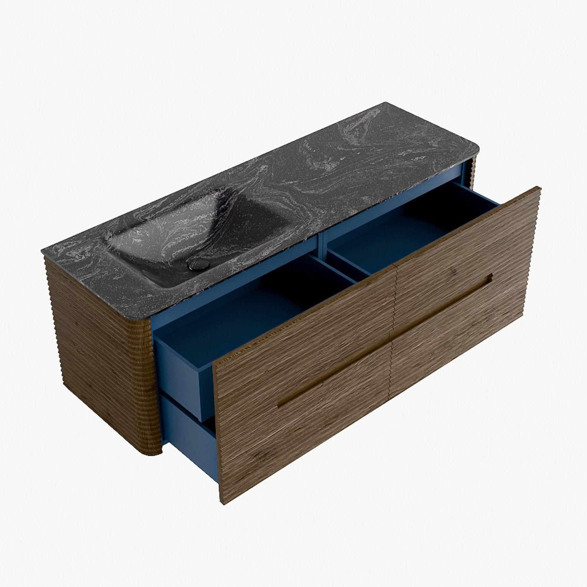 Mondiaz CIRO-DLUX Meuble de salle de bains - 140x45x50cm - Vasque solid surface Lava - 1 lavabo à gauche - sans trous de robinetterie - 4 tiroirs - Dusk