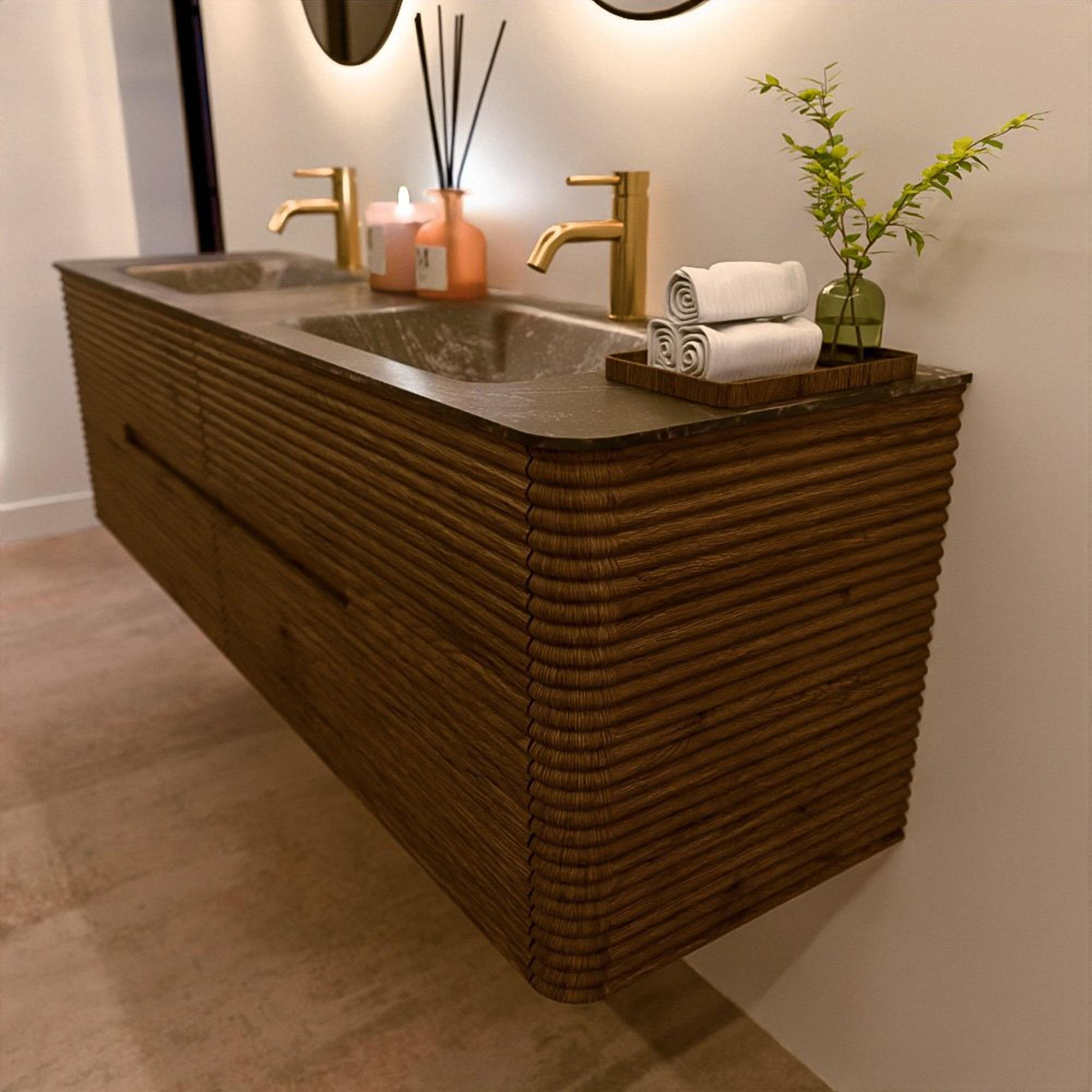 Le meuble de salle de bain CIRO-DLUX a été développé pour ceux qui choisissent un design moderne, des matériaux naturels et une fonctionnalité de haute qualité. Avec des dimensions allant de 70 cm à 190 cm, la gamme CIRO-DLUX s’intègre facilement aussi bien dans les salles de bain compactes que dans les grands espaces de design. Chaque meuble est une combinaison équilibrée d’esthétique, de savoir-faire et de qualité durable.