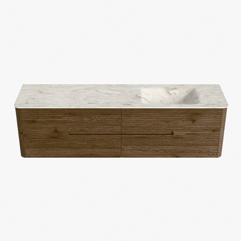 Mondiaz CIRO-DLUX Meuble de salle de bains - 180x45x50cm - plan-vasque en solid surface Ostra - 1 vasque à droite - sans trous de robinet - 4 tiroirs - Dusk