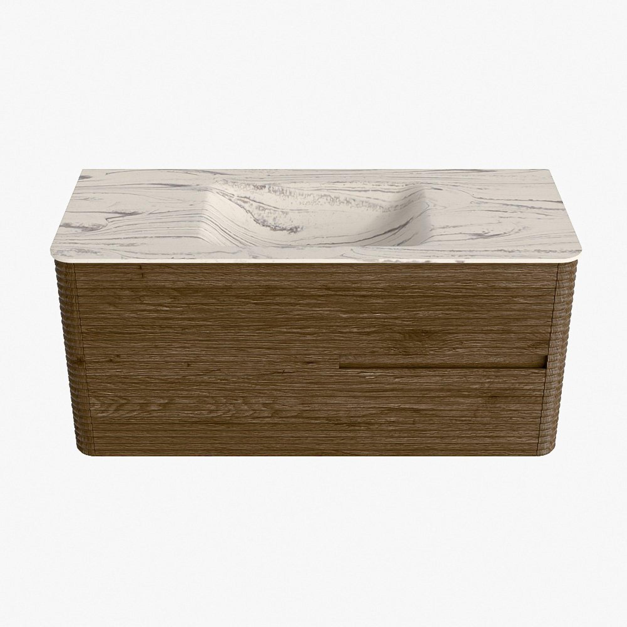 Mondiaz CIRO-DLUX Ensemble meuble de salle de bains - 110x45x50cm - Plan vasque solid surface Nata - 1 vasque au milieu - sans trous de robinet - 2 tiroirs - Dusk