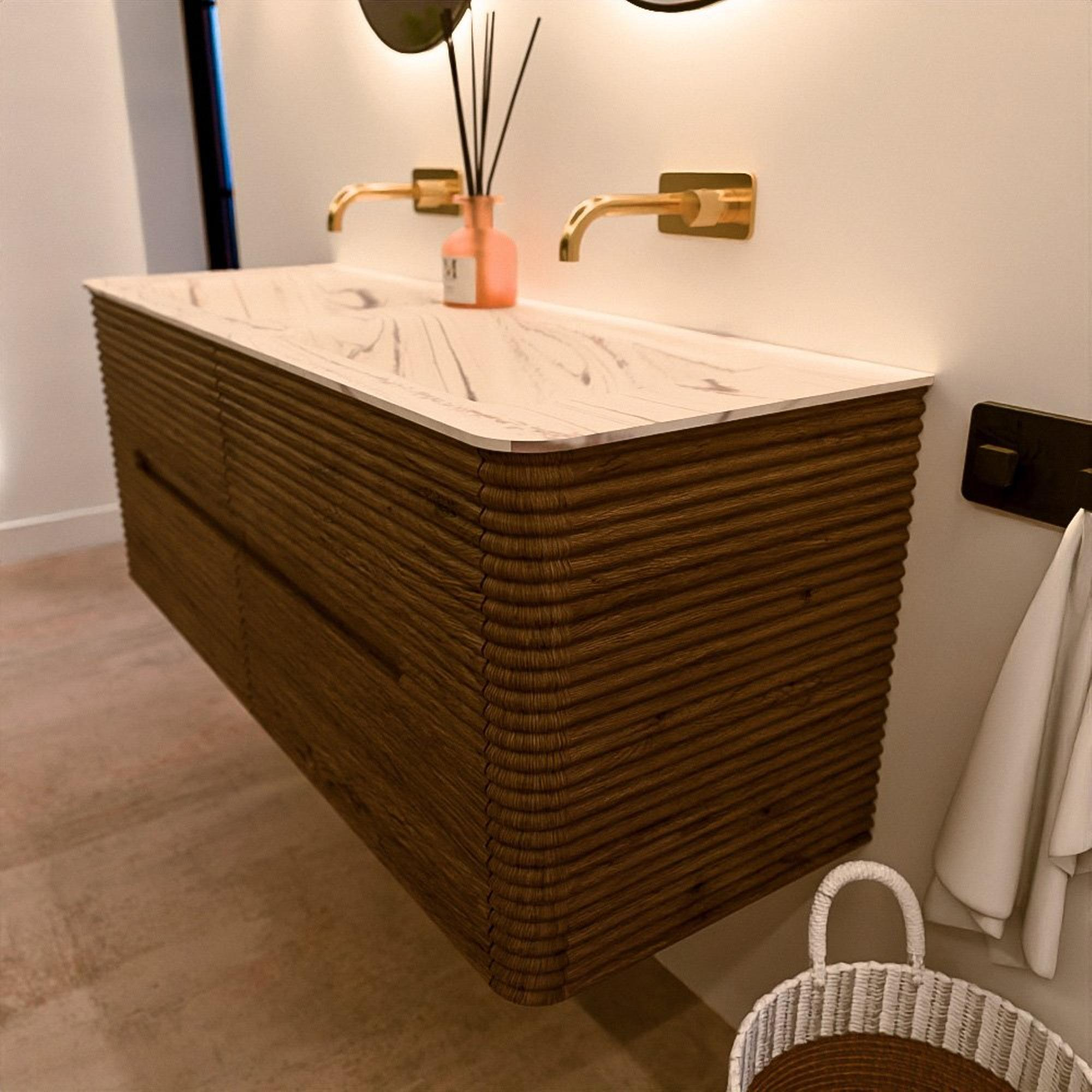 Mondiaz CIRO-DLUX Ensemble de meubles de salle de bains - 130x45x50cm - plan vasque en solid surface Nata - 2 vasques double - sans trous de robinet - 4 tiroirs - Dusk
