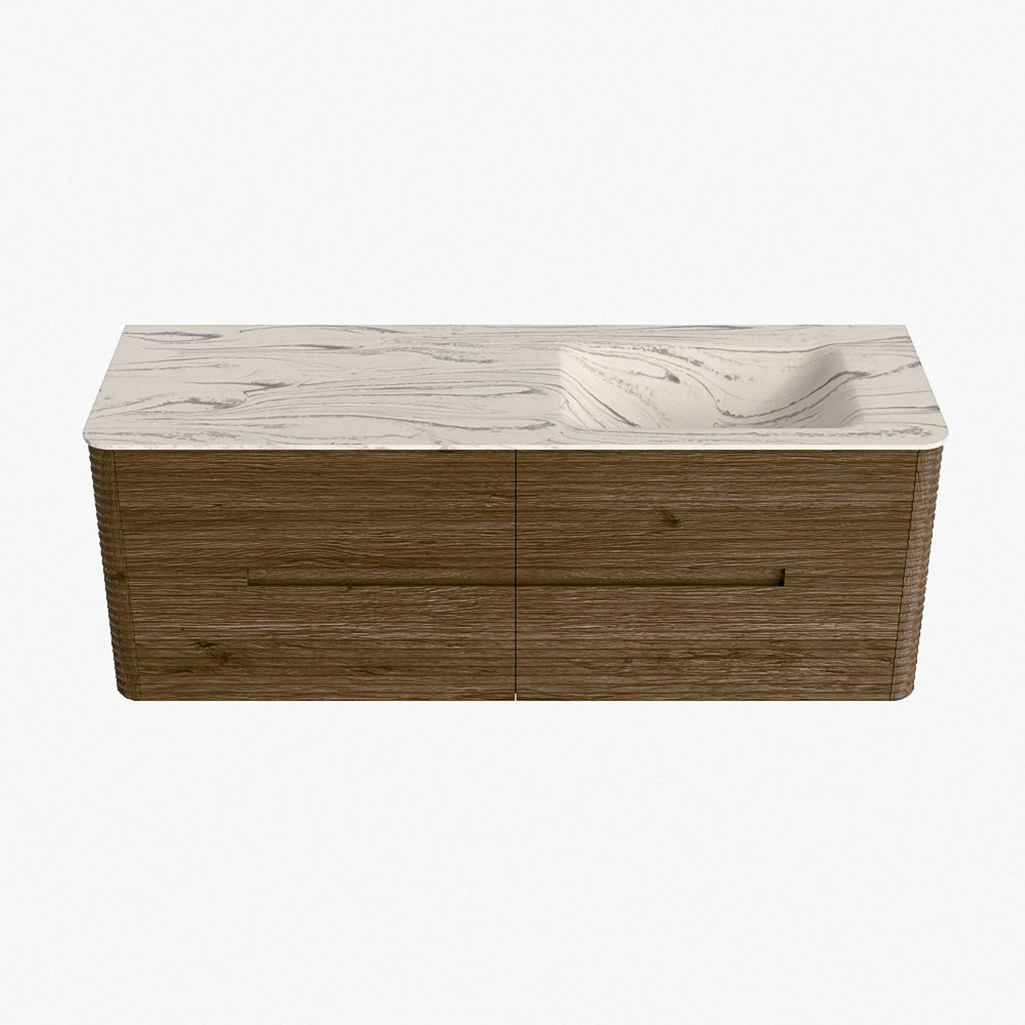 Mondiaz CIRO-DLUX Ensemble de meubles de salle de bains - 140x45x50cm - Plan-vasque solid surface Nata - 1 lavabo à droite - 1 trou de robinet - 4 tiroirs - Dusk