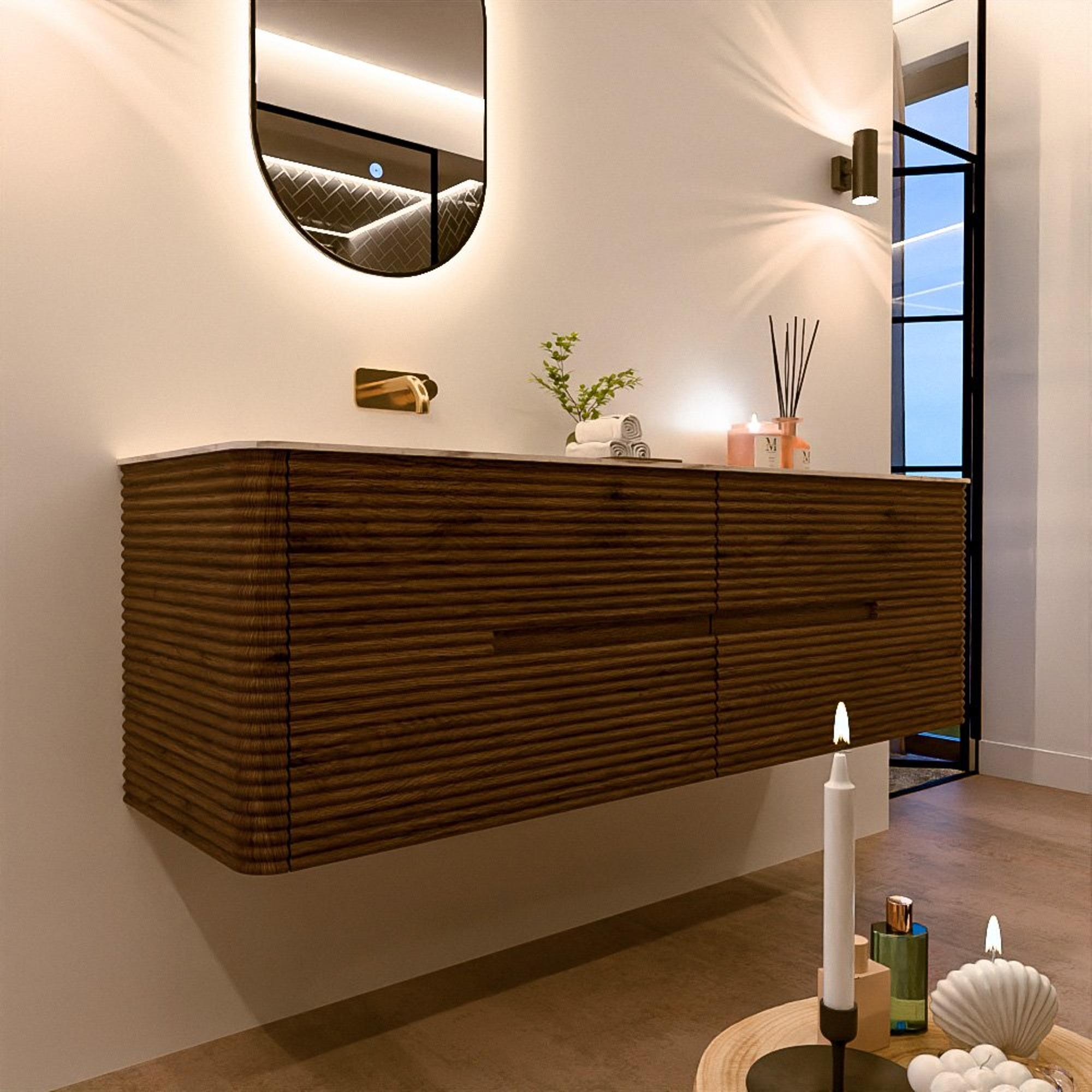 Le meuble de salle de bain CIRO-DLUX a été développé pour ceux qui choisissent un design moderne, des matériaux naturels et une fonctionnalité de haute qualité. Avec des dimensions allant de 70 cm à 190 cm, la gamme CIRO-DLUX s’intègre facilement aussi bien dans les salles de bain compactes que dans les grands espaces de design. Chaque meuble est une combinaison équilibrée d’esthétique, de savoir-faire et de qualité durable.