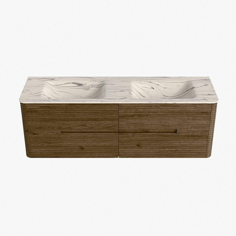 Mondiaz CIRO-DLUX Ensemble de meubles de salle de bains - 150x45x50cm - Plan vasque solid surface Nata - 2 vasques Double - sans trous de robinet - 4 tiroirs - Dusk