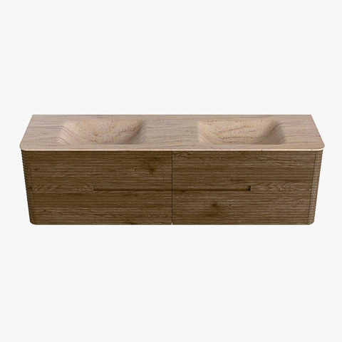 Mondiaz CIRO-DLUX Meuble de salle de bains - 170x45x50cm - Plan vasque solid surface Saba - 2 vasques Double - 2 perçages de robinetterie - 4 tiroirs - Dusk