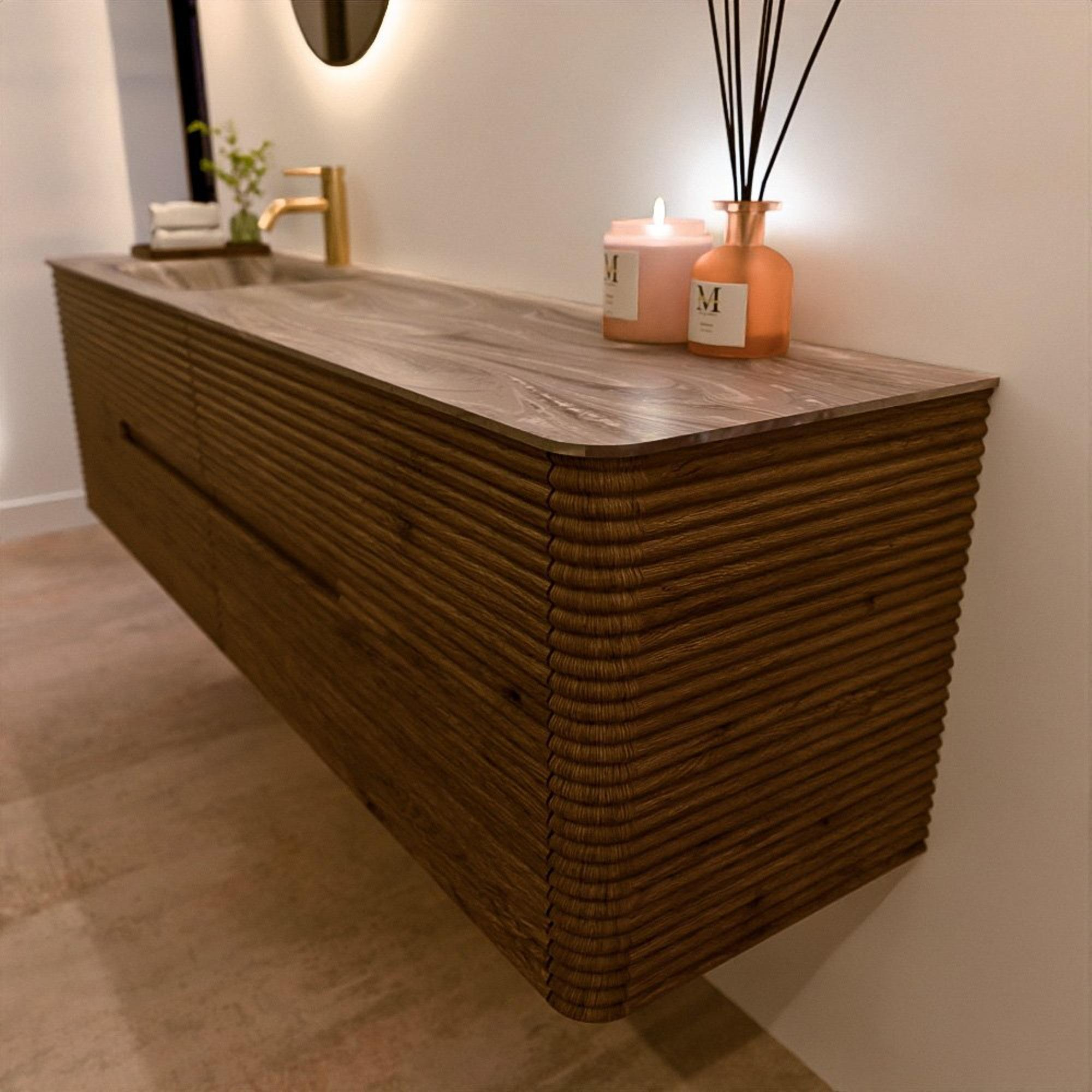 Le meuble de salle de bain CIRO-DLUX a été développé pour ceux qui choisissent un design moderne, des matériaux naturels et une fonctionnalité de haute qualité. Avec des dimensions allant de 70 cm à 190 cm, la gamme CIRO-DLUX s’intègre facilement aussi bien dans les salles de bain compactes que dans les grands espaces de design. Chaque meuble est une combinaison équilibrée d’esthétique, de savoir-faire et de qualité durable.