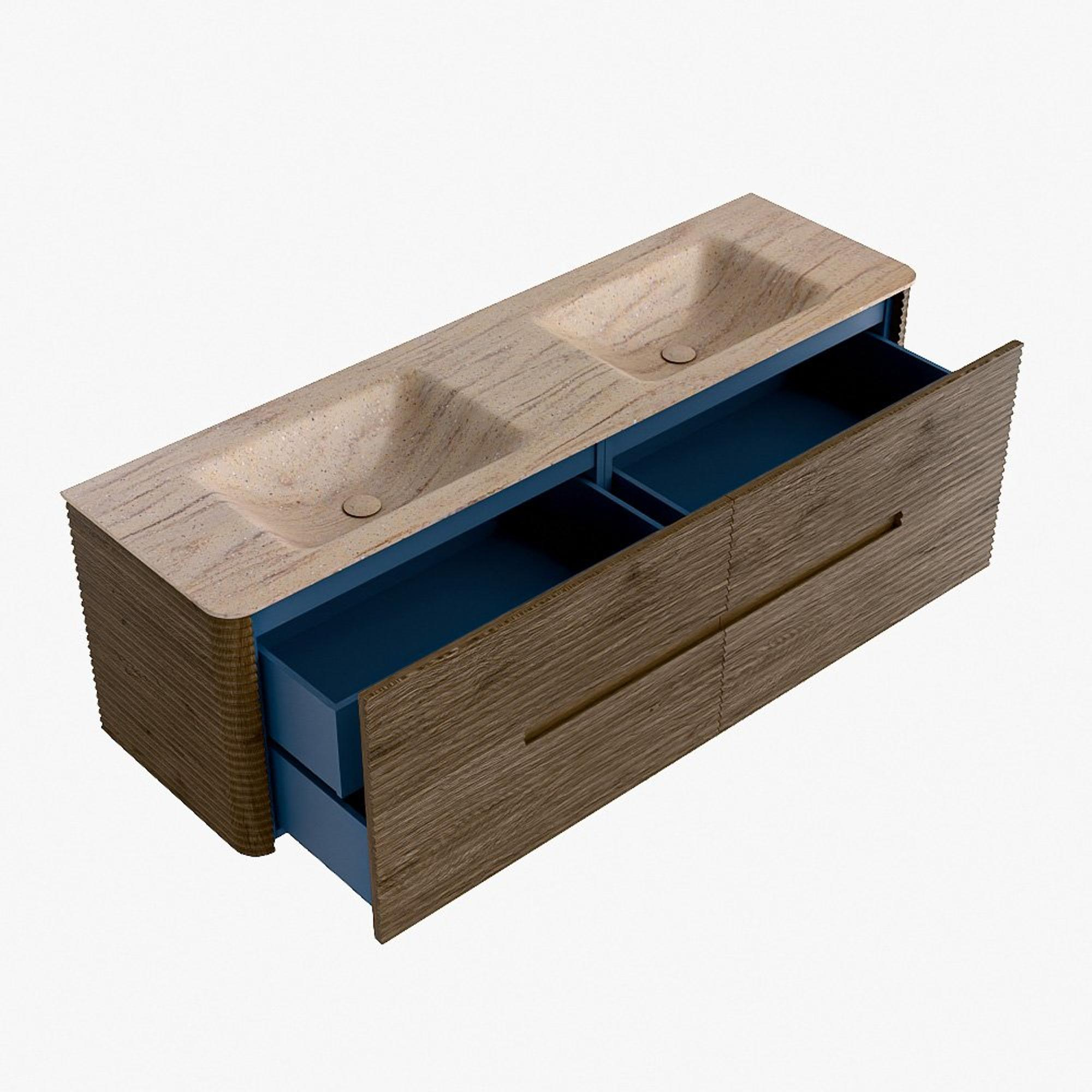 Mondiaz CIRO-DLUX Meuble de salle de bains - 160x45x50cm - Vasque en solid surface Saba - 2 vasques double - sans trous de robinet - 4 tiroirs - Dusk
