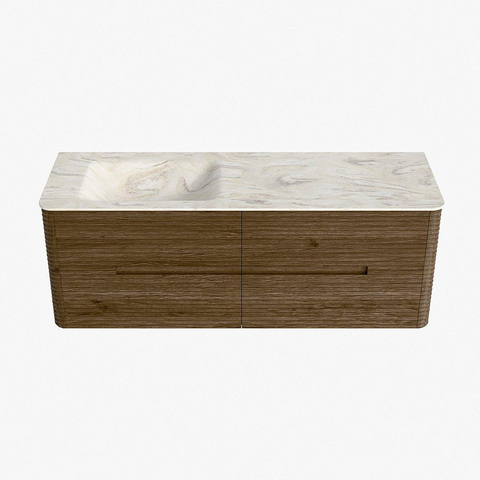 Mondiaz CIRO-DLUX Meuble de salle de bains - 140x45x50cm - Plan vasque solid surface Ostra - 1 lavabo à gauche - 1 trou de robinet - 4 tiroirs - Dusk