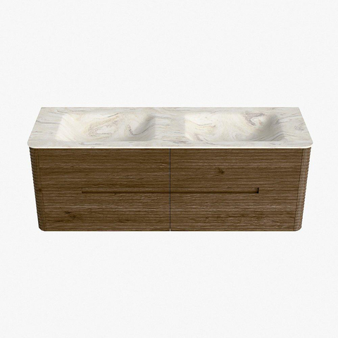 Mondiaz CIRO-DLUX Meuble de salle de bains - 140x45x50cm - Plan-vasque en solid surface Ostra - 2 vasques Double - sans trous de robinetterie - 4 tiroirs - Dusk