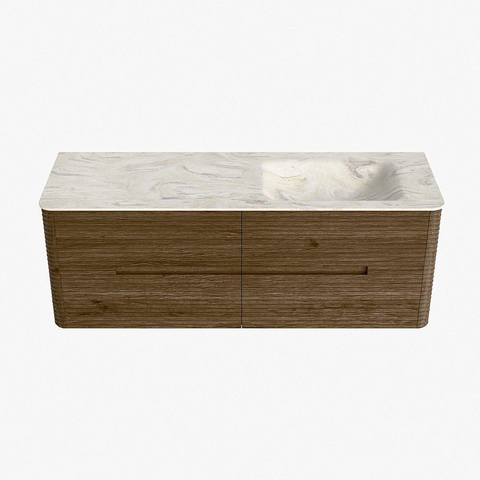 Mondiaz CIRO-DLUX Ensemble de meubles de salle de bains - 140x45x50cm - vasque en solid surface Ostra - 1 lavabo à droite - sans trous de robinet - 4 tiroirs - Dusk