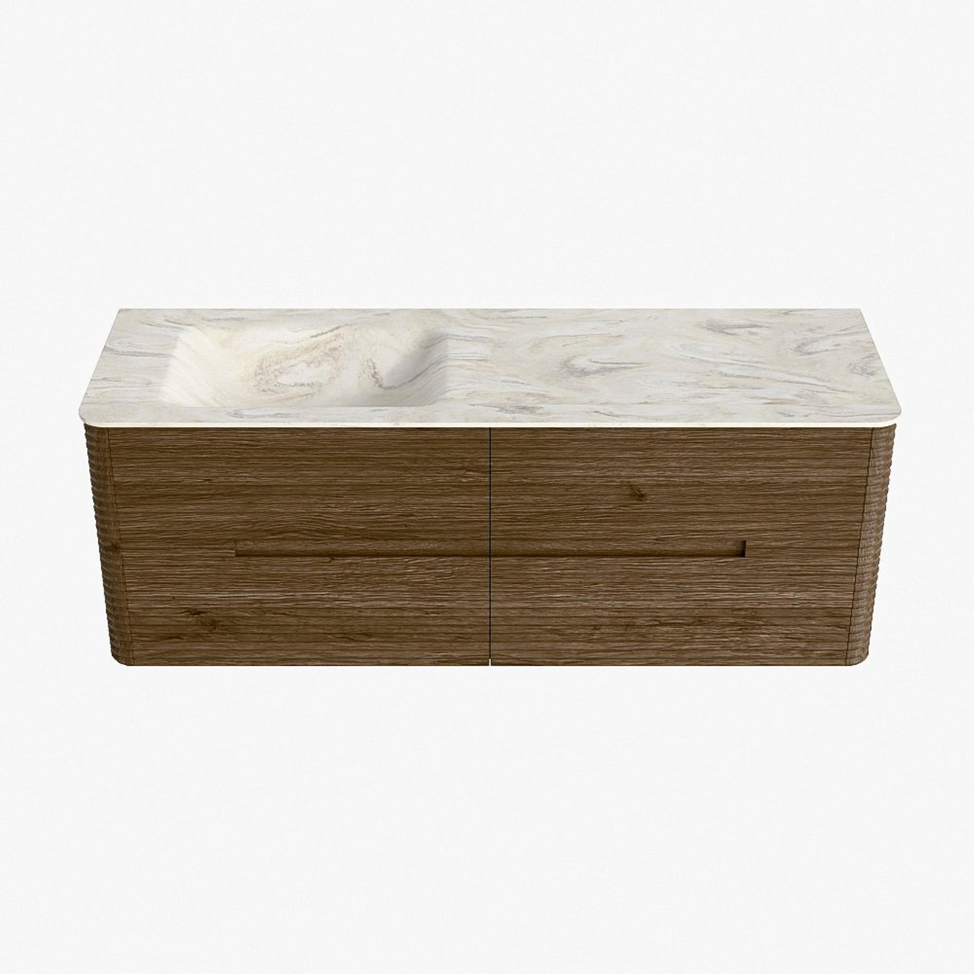Mondiaz CIRO-DLUX Meuble de salle de bains - 140x45x50cm - Plan vasque solid surface Ostra - 1 vasque à gauche - sans trous de robinet - 4 tiroirs - Dusk