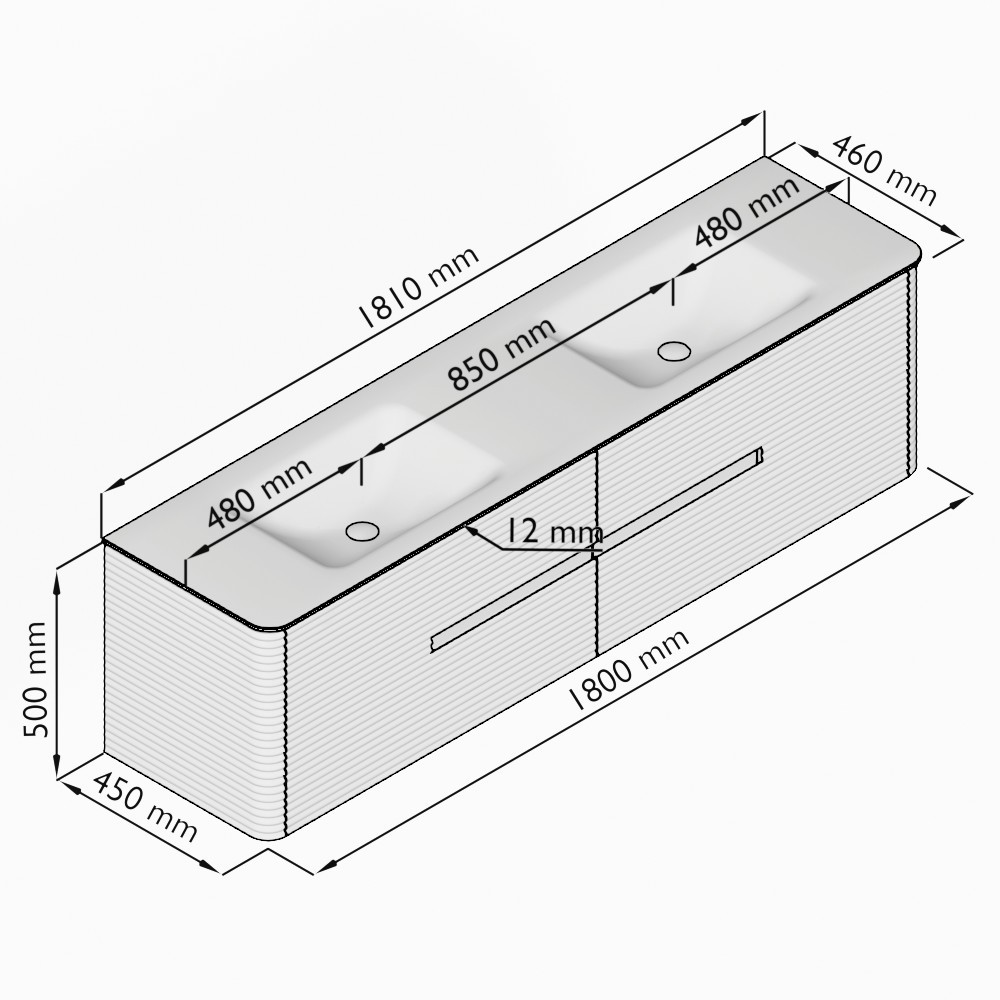 - Largeur du lavabo: 181cm