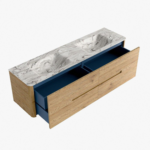 Mondiaz CIRO-DLUX Meuble de salle de bains - 170x45x50cm - Plan-vasque Solid surface Glace - 2 vasques Double - sans trous de robinet - 4 tiroirs - Chêne