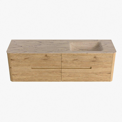 Mondiaz CIRO-DLUX Meuble de salle de bains - 160x45x50cm - Plan vasque solid surface Arena - 1 lavabo à droite - 1 trou de robinet - 4 tiroirs - Chêne