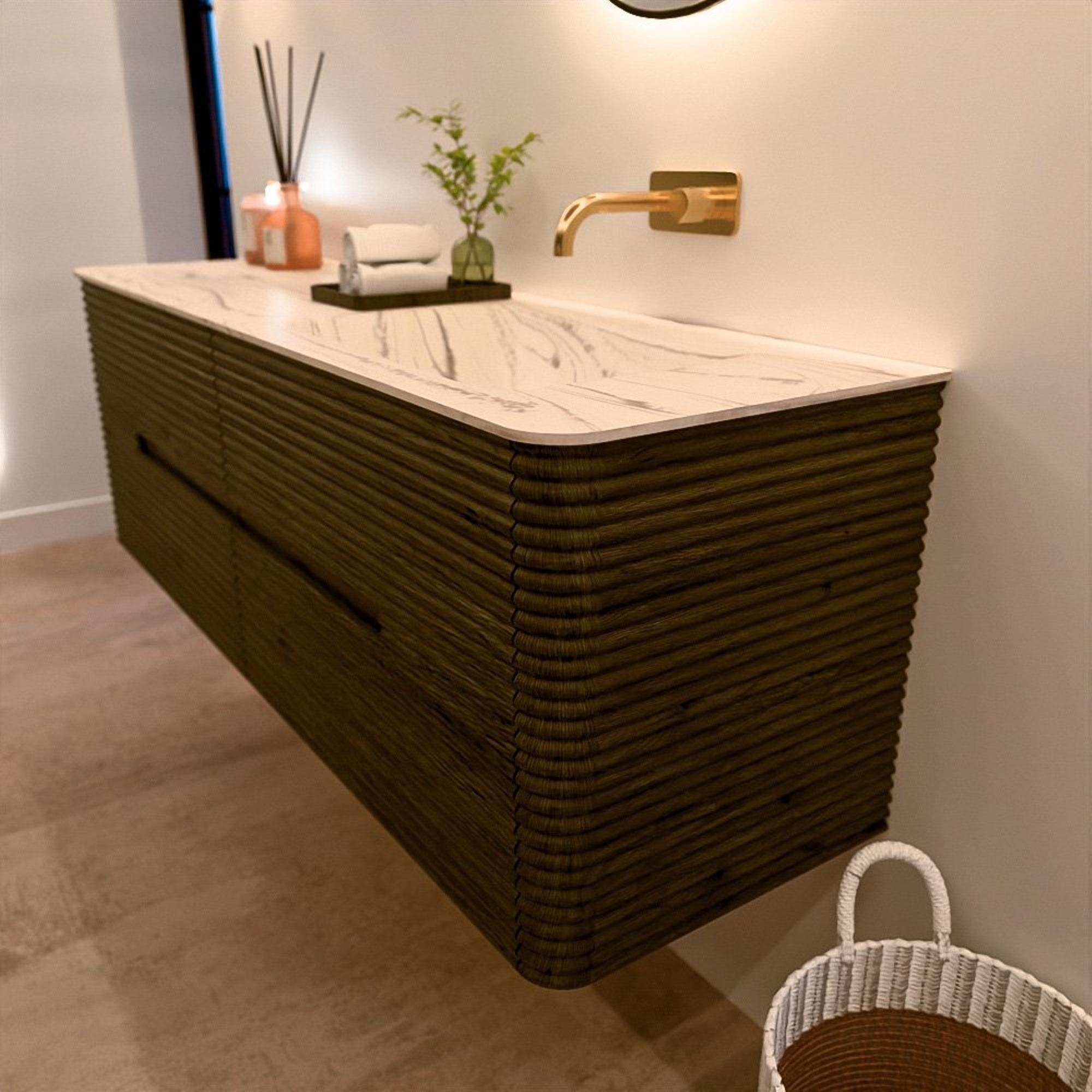 Le meuble de salle de bain CIRO-DLUX a été développé pour ceux qui choisissent un design moderne, des matériaux naturels et une fonctionnalité de haute qualité. Avec des dimensions allant de 70 cm à 190 cm, la gamme CIRO-DLUX s’intègre facilement aussi bien dans les salles de bain compactes que dans les grands espaces de design. Chaque meuble est une combinaison équilibrée d’esthétique, de savoir-faire et de qualité durable.