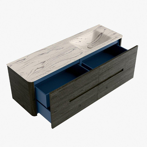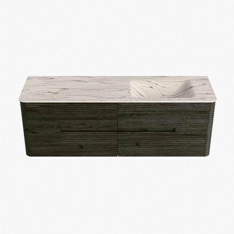 Mondiaz CIRO-DLUX Ensemble de meubles de salle de bains - 150x45x50cm - vasque solid surface Nata - 1 lavabo à droite - sans trous de robinet - 4 tiroirs - Shadow
